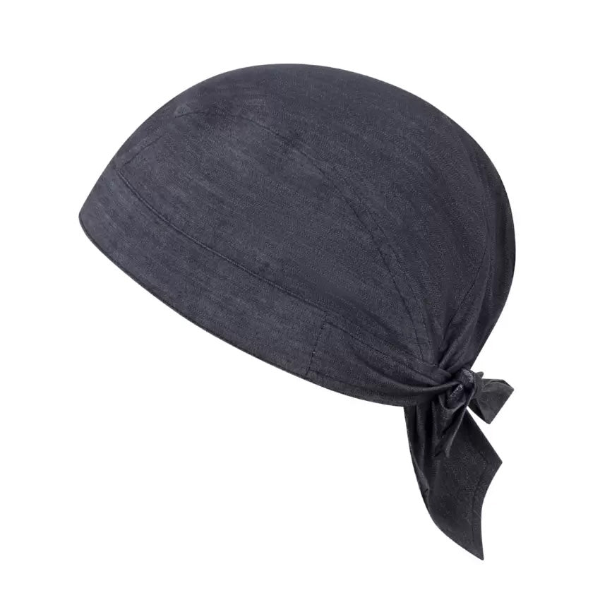 La bandana Marte è composta da 3 pezzi uniti da 2 tagli che modellano la forma del capo. La fascia unisce i pezzi e si annoda sul retro, dando la possibilità di regolare la misura. Include un tergisudore per maggiore comfort. Realizzata in leggero jeans cotone e poliestere stretch 175 g/m², fiammato, è resistente ai lavaggi alle alte temperature.
