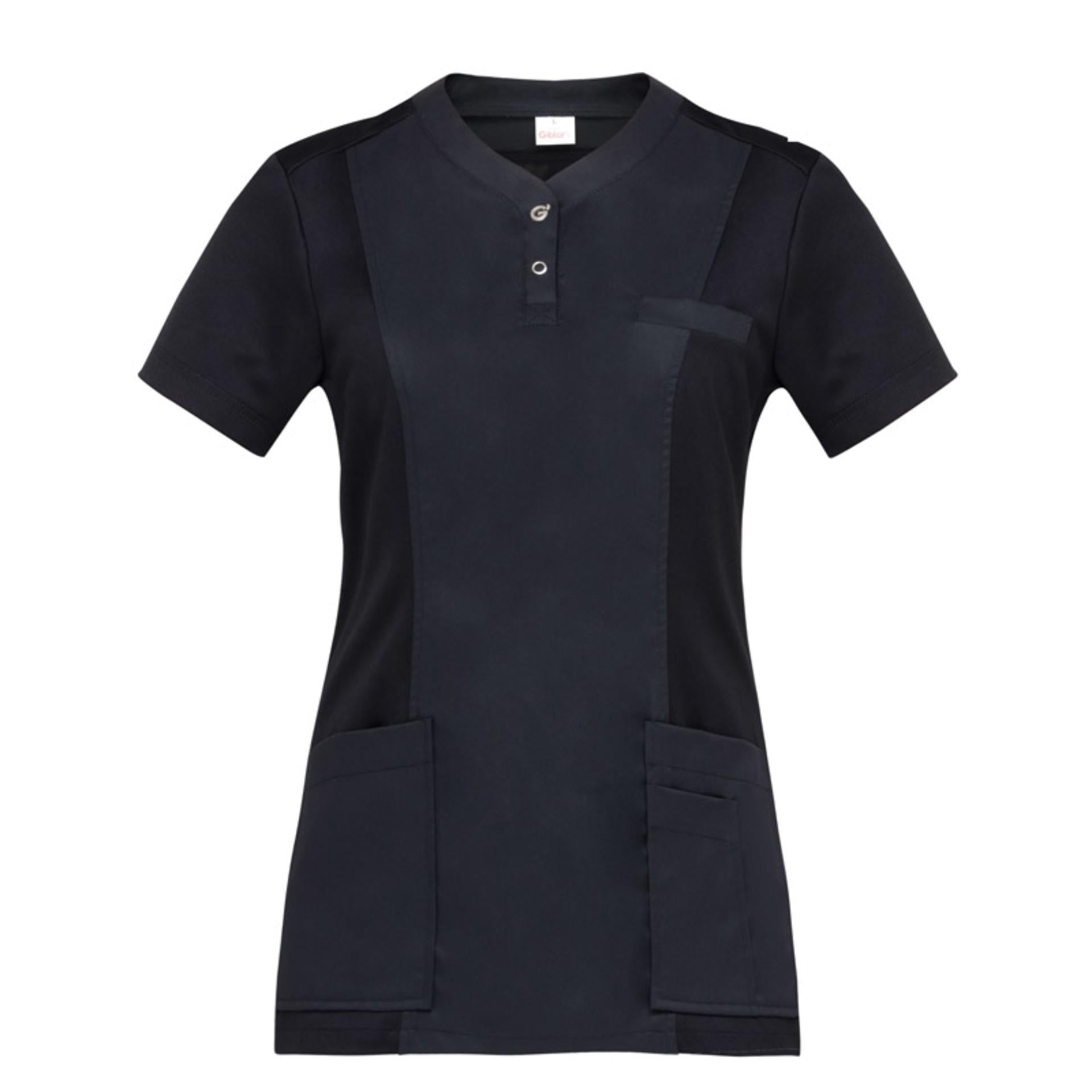 La casacca Chloe, versione femminile della casacca Connor presenta un centro davanti in TENCEL™ ed il resto del capo in maglia armatura piquè: un perfetto mix tra due dei nostri tessuti più performanti. Il TENCEL™, fibra di origine botanica che assicura prestazioni eccellenti per tutto il giorno, assorbe fino al 50% di umidità in più rispetto al cotone, resiste all'usura mantenendo inalterati forma e colore anche con lavaggi alle alte temperature e risulta facile da stirare, mentre il tessuto a maglia con motivo piquè combina morbidezza, alta traspirabilità e asciugatura veloce. Oltre che per la manica corta, il modello si caratterizza per un collo a serafino chiuso da due automatici di cui uno logato "G", un taschino sul petto, due tasche sul fondo ed un piccolo taschino portapenne. Interamente impunturato a due aghi, ha aspetto moderno e sportivo in entrambe le varianti di colore, bianca e nera, ideali per saloni, SPA e studi dentistici.