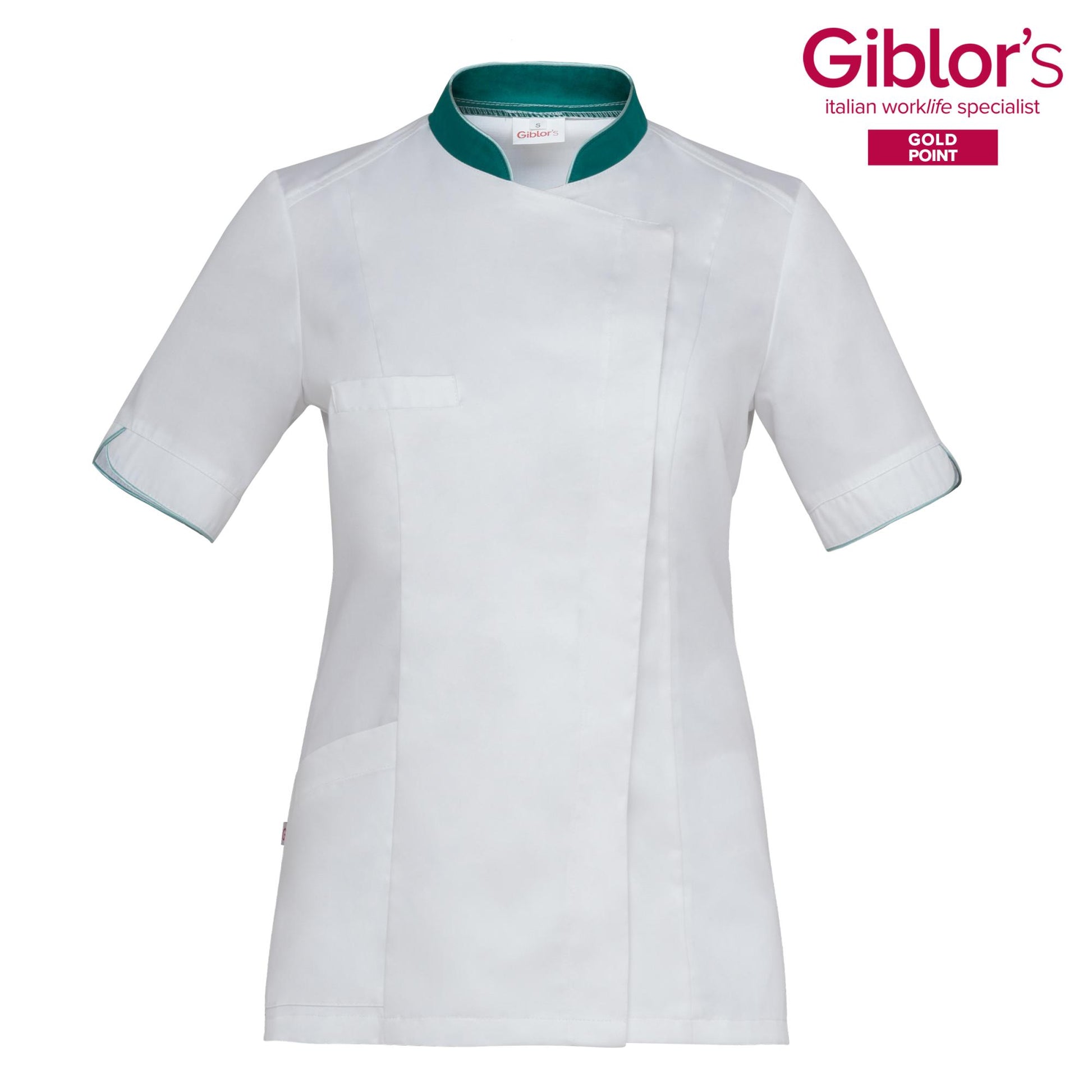 Casacca Donna Tania Bianco con Profili Verde Manica Corta Satin Facile Stiro Casacca Infermiera Casacca Medicale con inserti