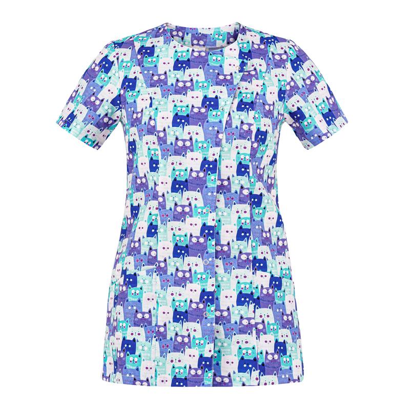 Casacca Elea Fantasia Gatti Casacca Donna Manica Corta No Stiro Veterinario Pet Shop Grooming Saloon No Stiro