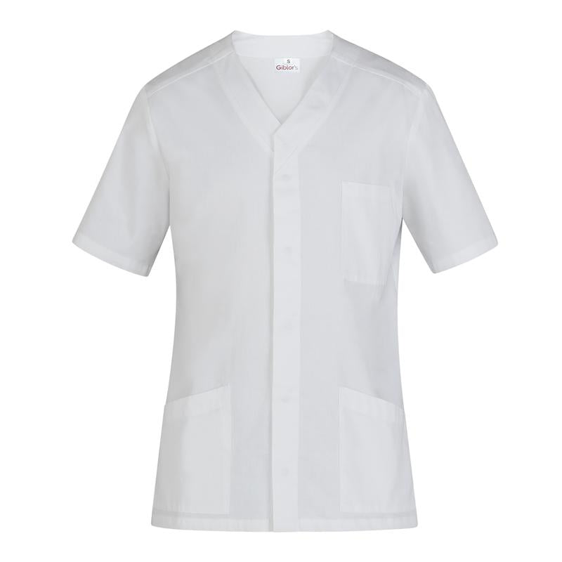 La casacca Franco di Giblor's, nasce per fronteggiare l'aumento di richieste soprattutto dai clienti esteri, di modelli più pratici nel mondo health&care. Per questo, abbiamo pensato di proporre una nuova variante dell'intramontabile casacca Piero con un'apertura centrale caratterizzata da automatici nascosti. La casacca Franco è realizzata a maniche corte, scollatura a V, 3 tasche e 2 spacchi sui fianchi per garantire libertà nei il movimenti. Prodotto in gabardina 100% cotone garantisce alte performance, come resistenza alle alte temperature e ai lavaggi con cloro, pur mantenendo una mano mordida, anche per i clienti più esigenti. Disponibile solo nella classica variante bianca.