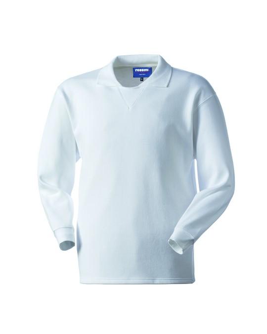 Felpa con collo a polo con inserto triangolare in maglia elastica, parasudore interno al collo, polsi in maglia elastica, giromaniche e fondo dritto. 80% cotone, 20% poliestere. Peso 290 g/m². Con garzatura I^ Categoria per rischi minimi