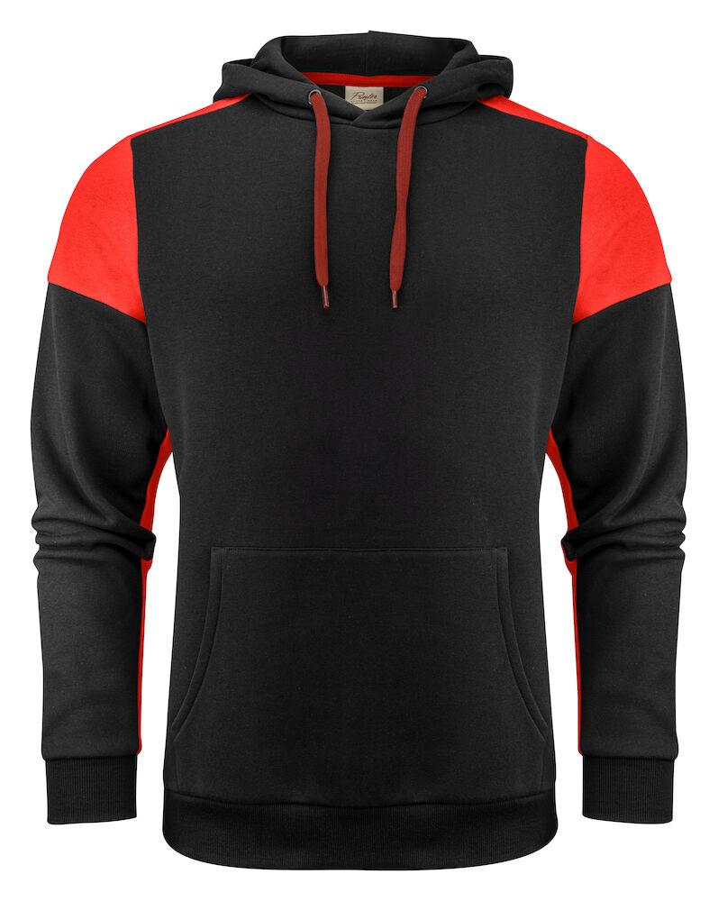 Felpa Bicolore Prime Nero Rosso Felpa Cappuccio Misto Cotone Organico Poliestere Riciclato Ecosostenibile