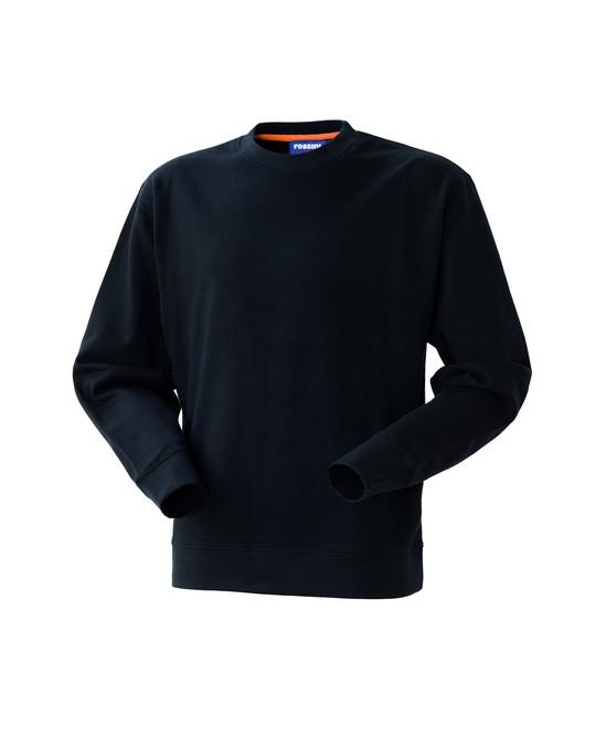 Felpa con parasudore interno al collo di colore a contrasto arancio (in tinta per il colore bianco), polsi e fascia girovita in maglia elastica. 100% cotone, Peso 280 g/m². Con garzatura I^ Categoria per rischi minimi