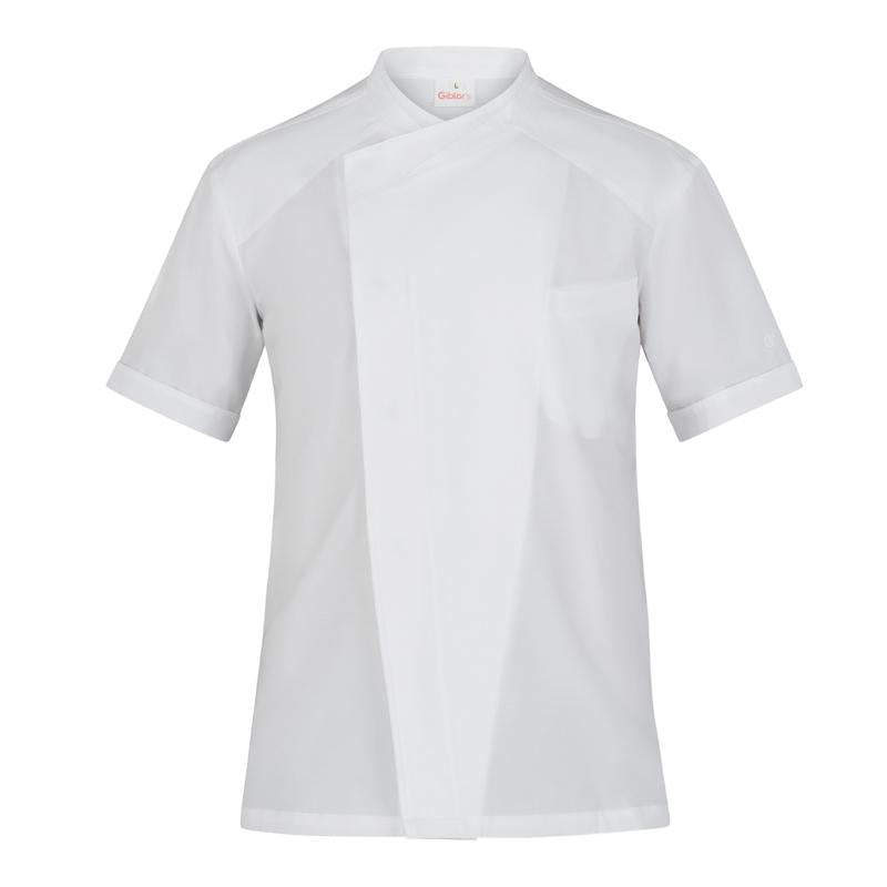 La giacca Aron di Giblor's è il capo perfetto per chef e operatori del settore food alla ricerca di un look moderno e glamour, senza rinunciare alla funzionalità e alla comodità. Frutto di una minuziosa ricerca sui tagli e sull'utilizzo di materiali di alta qualità. Questa giacca è caratterizzata da uno stile eclettico ed elegante. Il collo francese asimmetrico, arricchito da un secondo dettaglio, crea un effetto di grande impatto, mentre i due spalloni conferiscono al capo un'ulteriore nota distintiva. L'abbottonatura a doppio petto nasconde sei automatici e la doppia impuntura a due aghi, valorizza gli spalloni e il collo pronunciato. L'innovativo tessuto è realizzato con filato Sorona® dalle performance uniche che conferisce al capo: morbidezza ed elasticità meccanica, ha l'armatura ripstop caratterizzata da una resistenza superiore agli strappi e alle abrasioni. La giacca Aron è sviluppata a manica corta con una pieghetta tipica da camicia e un fit classico Giblor's. Il ricamo del logo "G" è realizzato con un filato polineon di alta qualità. La giacca è caratterizzata da impunture a due aghi e presenta due spacchi classici "tipo giacca" per garantire una maggiore libertà di movimento. In sintesi, la giacca Aron è il capo ideale per chi cerca uno stile ricercato e professionale, senza alcun compromesso sulla funzionalità e la durabilità.