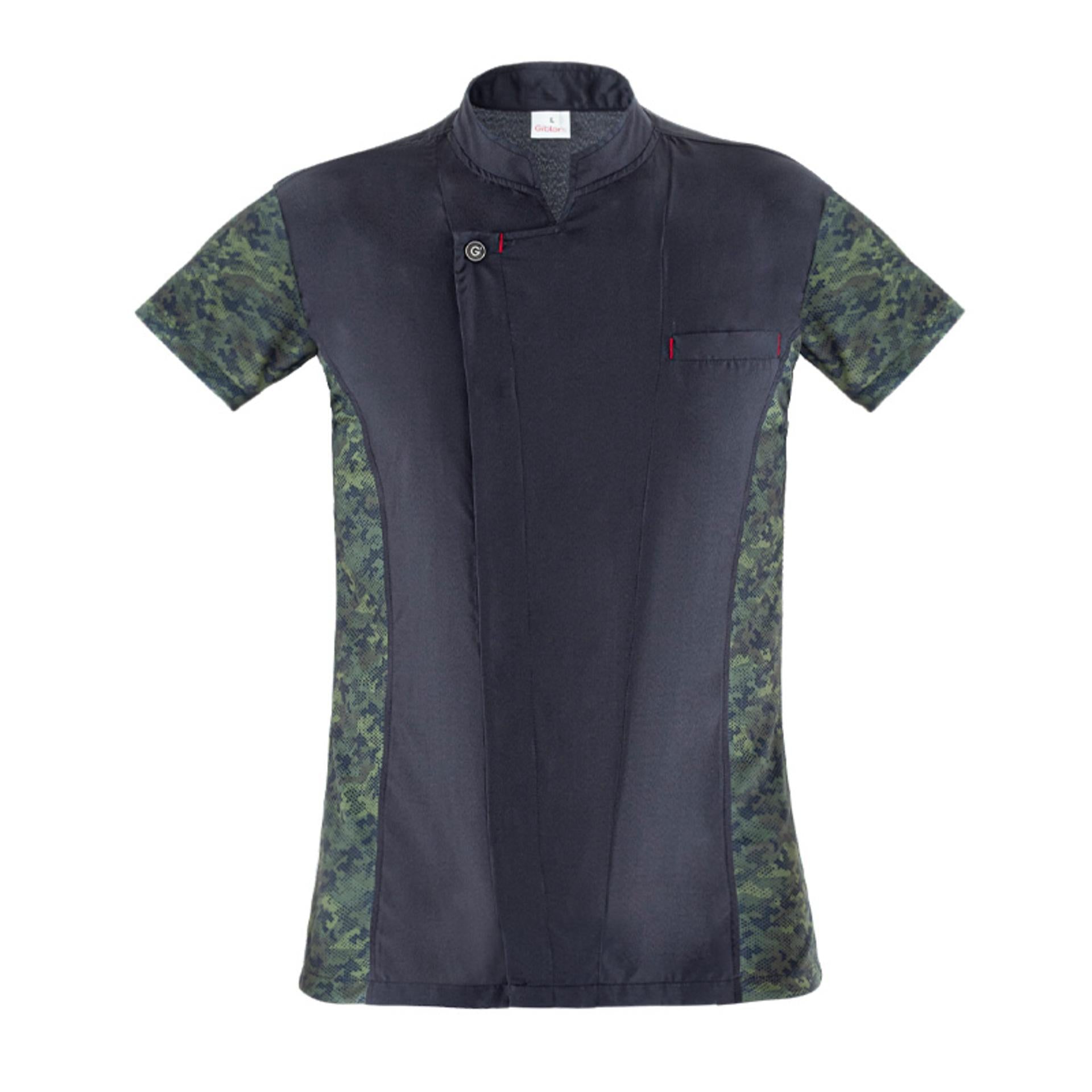 Giacca Cuoco Sylvester Nero Pixel Mimetico Manica Corta Leggera Giacca Cuoco Microfibra