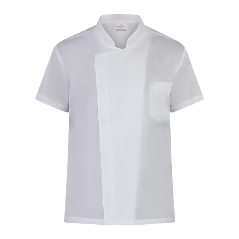 La giacca Federico fa parte della collezione Giblor's "Evergreen"; è un capo sportivo e leggero, adatto a diversi ambienti di lavoro nel settore food ed è realizzata in un leggero policotone dalla grammatura di soli 115 g / m². Il colletto classico coreano, con abbottonatura nascosta, dona un tocco di eleganza mentre la manica corta garantisce una totale libertà di movimento. La chiusura della giacca Federico è rinforzata da un'impuntura a piedino di 4 mm, che la rende resistente ai frequenti lavaggi alle alte temperature, necessari nel settore food. Inoltre, presenta un taschino sul petto lato cuore sempre utile per avere a portata di mano piccoli oggetti. La giacca Federico è caratterizzata da un'ottima vestibilità grazie ai fianchetti posteriori in maglia di piqué e al taglio sagomato del davanti e del dietro, che fanno aderire il capo al corpo. È un capo ideale per chef e operatori del settore food che desiderano una giacca professionale, elegante e allo stesso tempo confortevole. Già presente a catalogo in diversi colori, è ora proposta nelle nuove varianti: bianco, tortora, bordeaux, verde militare e blu.