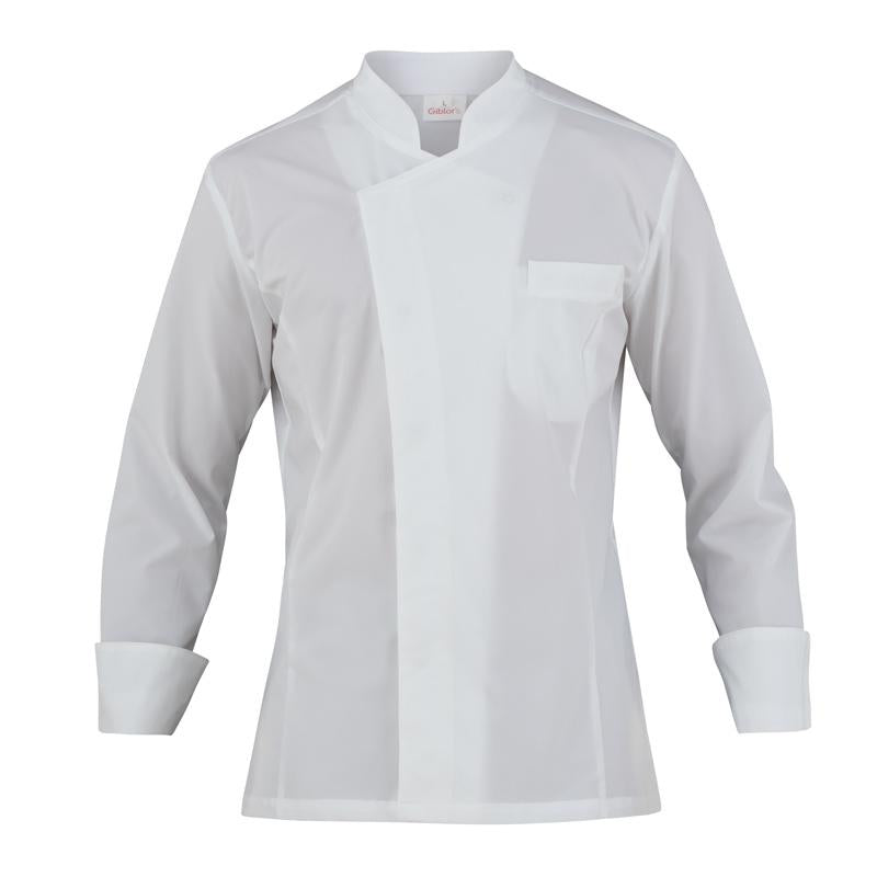 La giacca Giorgio è uno dei capi bestseller Giblor's. È realizzata nel nuovo G-TECH PRO, un tessuto dalle incredibili performance: antibatterico, mantiene un'eccellente traspirabilità, è lavabile a alte temperature, tollera gli spruzzi di candeggina, asciuga velocemente, è no-stiro e non stinge. Giorgio presenta il collo alla coreana dalla linea arrotondata, che ben si accorda con l'abbottonatura nascosta, due spacchi nel retro che ne delineano il taglio slim fit, un taschino sul petto lato cuore e un portapenne logato sulla manica. e disponibile nelle varianti bianca e nera ed ha sua versione femminile nella giacca Gloria.