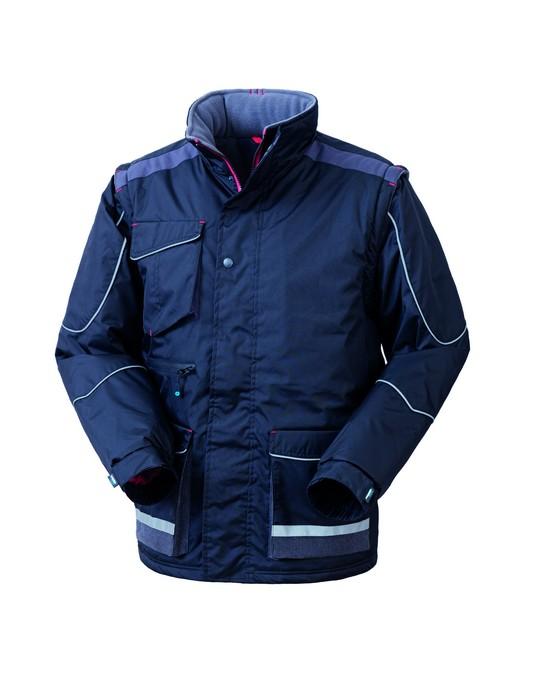 Giubbotto invernale imbottito con chiusura centrale anteriore con cerniera coperta da patella chiusa con bottoni automatici, cappuccio impermeabile interno chiuso con cerniera, maniche staccabili. Tasca al petto destro con rinforzo in tessuto rip stop chiusa con patella e velcro, tasca a filetto chiusa con cerniera antipioggia, due tasche anteriori inferiori applicate con soffietti laterali di rinforzo in tessuto rip stop chiuse con patella e velcro. Cerniera orizzontale interna al fondo per la possibilità di personalizzazione sulla schiena, inserti di tessuto rifrangente, polsi al fondo manica con elastico e alamaro regolabile con velcro, inserti di colore a contrasto. *** TAGLIA 4XL DISPONIBILE SOLO PER IL COLORE 01 BLU *** ESTERNO: 100% poliestere mini Rip-Stop spalmato in PVC. INTERNO: Parte inferiore in fodera, Parte superiore in pile, Imbottitura con ovatta 100% poliestere. I^ Categoria per rischi minimi