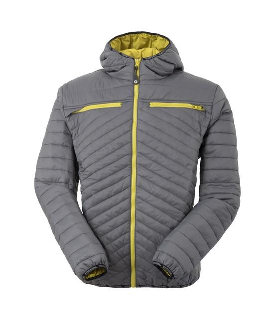 Giubbotto imbottito con chiusura anteriore con cerniera in plastica e con cappuccio. Due taschini al petto chiusi con cerniera, due tasche inferiori a filetto chiuse con bottone automatico, due tasche interne e ulteriore taschino applicato sopra la tasca interna sinistra chiuso con velcro. Rifinito con bordo elastico personalizzato Rossini al fondo manica, in vita, su collo e cappuccio. ESTERNO: 100% Poliammide riciclata. INTERNO: fodera 100% poliestere, imbottitura in ovatta 100% riciclata. I^ Categoria per rischi minimi