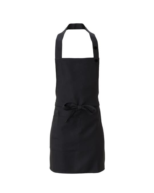 Il grembiule Latina presenta uno scollo quadrato, con abbottonatura regolabile attraverso un bottone quattro fori. e caratterizzato da ha un'ampia tasca laterale, da un portapenne e da lunghi lacci annodabili anche sul davanti. Il tessuto è resistente alle alte temperature ed è candeggiabile.