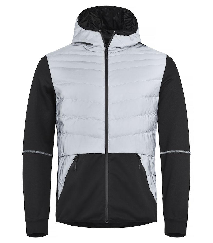 Giacchino hoody leggermente imbottito. Tessuto softshell elasticizzato. Disponibile anche in variante rifrangente. Cerniere waterproof. Tasconi esterni con zip. Due taschini interni. Asole per auricolari.