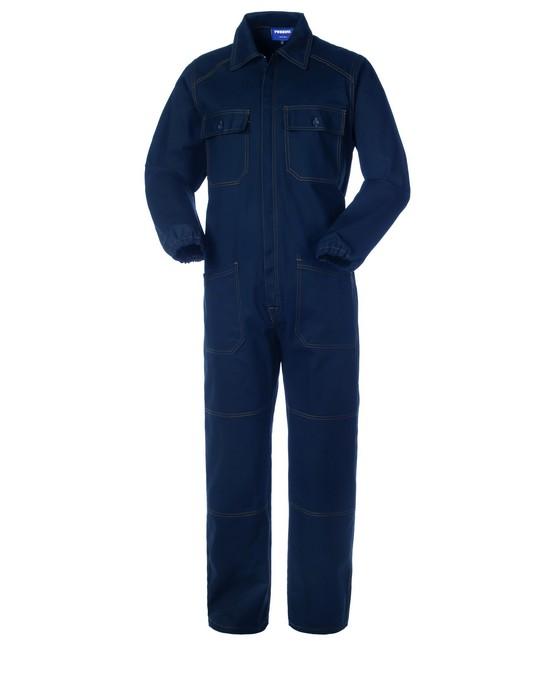 Tuta da lavoro con elastico in vita posteriore e chiusura anteriore con cerniera coperta. Due taschini al petto chiusi con aletta e bottone, due tasche inferiori, una tasca posteriore chiusa con bottone e un porta metro. Polsi con elastico, cuciture di colore a contrasto. *** TAGLIE 4XL DISPONIBILE SOLO PER I COLORI 01 BLU E 12 GRIGIO *** Drill 3/1, 100% cotone irrestringibile. Peso 280 g/m² I^ Categoria per rischi minimi
